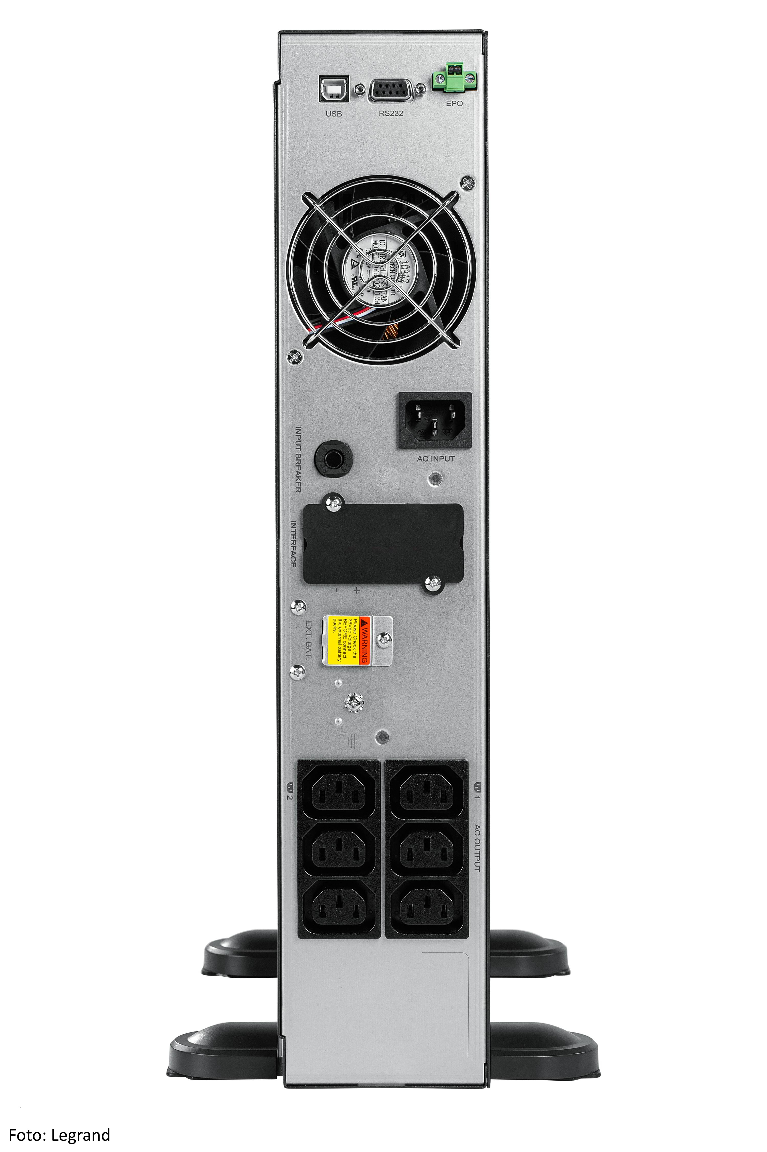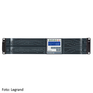 Das USV-Modell Daker DK + 1000 von Legrand ist eine unterbrechungsfreie Stromversorgung mit Hochfrequenz-PWM-Technologie, Doppelwandlung Online, durchgängigem Nullleiter, Nennleistung 1.000 VA - 900 W, ausgestattet mit einer VRLA Blei-Säure-Batterie, in einem speziellen Fach in der USV oder in einem oder mehreren externen Schränken, um eine minimale Betriebszeit von 10 Minuten bei 80 % der Last zu gewährleisten.